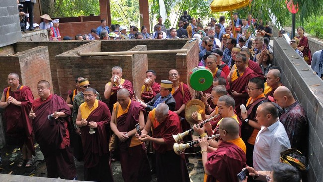 Magelang - Dalam rangakaian perayaan Tri Suci waisak 2568 BE/2024, para bhikkhu mengikuti prosesi merti karuna bumi. Ini potretnya.