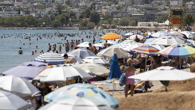 Yunani - Meski dilanda gelombang panas, pantai di Yunani ini makin ramai dikunjungi wisatawan. Ini potretnya.