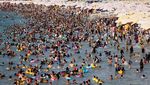 Meski sedang dihantam gelombang panas, para wisatawan tetap berlibur ke pantai.