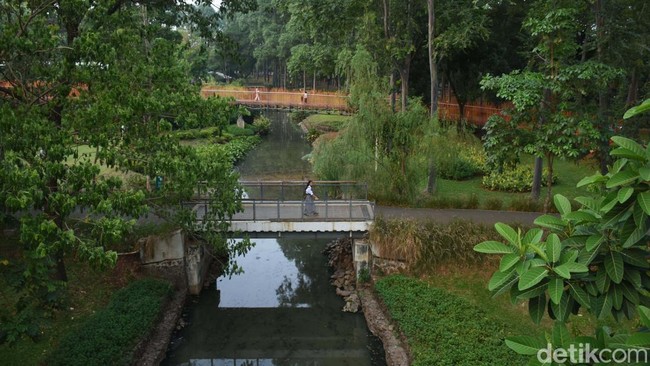 Jakarta - Kawasan Tebet Eco Park di Jaksel jadi destinasi favorit warga untuk bersantai dan berolahraga. Dengan akses gratis, taman ini ramai dikunjungi masyarakat.