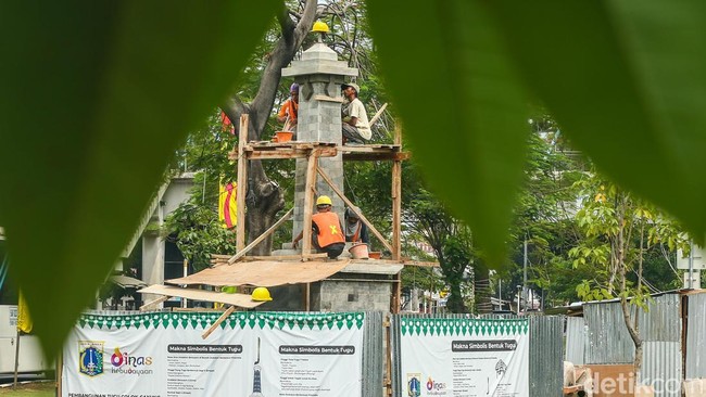 Jakarta - Tugu Pusaka Golok Cakung tengah dibangun di Kawasan Jakarta Timur, Rabu (20/11/2024). Begini progresnya.