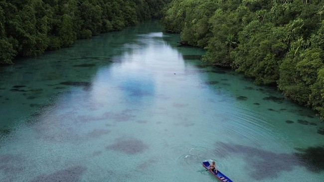 Berau - Kehe Daing atau lubang ikan yang merupakan destinasi wisata alam di Pulau Kakaban, Berau, Kalimantan Timur. Yuk lihat keindahannya.