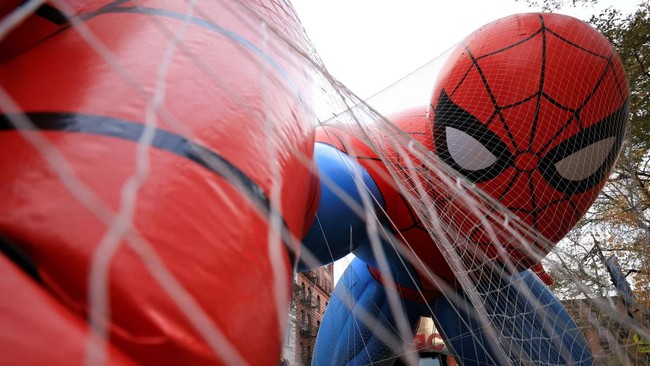 Karakter Spider-Man yang ikonik dipersiapkan sehari sebelum Parade Hari Thanksgiving Macy di Kota New York, Rabu, (27/11/2024).