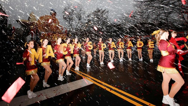 New York - Parade Hari Thanksgiving Macy ke-98 kembali digelar di New York. Penonton tetap antusias meski diterjang hujan deras.