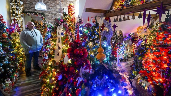 Jerman - Sebuah keluarga di Jerman menghias rumah mereka dengan 605 pohon Natal. Hal tersebut pun memecahkan rekor dunia.