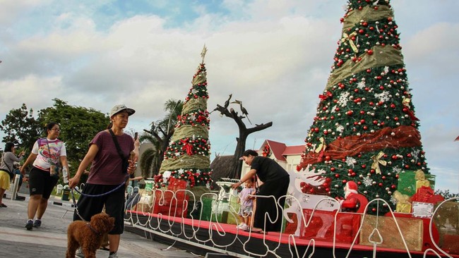 Kalimantan Tengah - Pemprov Kalteng memasang pohon dan hiasan natal sebagai tempat photobooth di kawasan Bundaran Besar. Dua pohon itu untuk menyambut perayaan Natal.