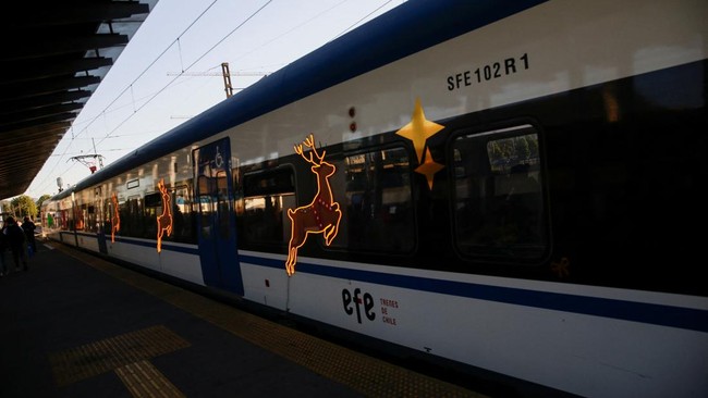 Dekorasi Lampu Natal Hiasi Kereta Api di Chile