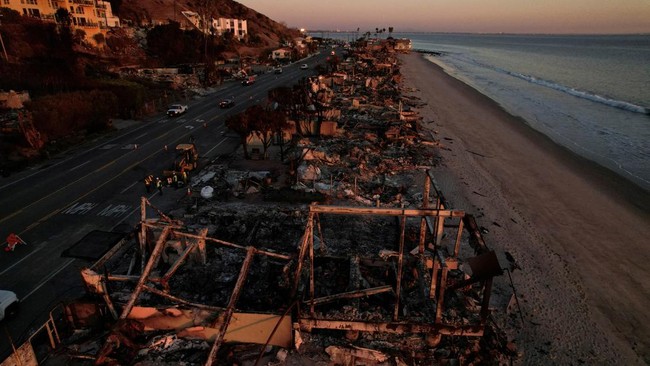 Amerika Serikat - Penampakan Malibu bak kota mati setelah dilalap amukan api kebakaran hutan di Los Angeles. Kebakaran Los Angeles menyebabkan kota pantai Malibu, nyaris lenyap.