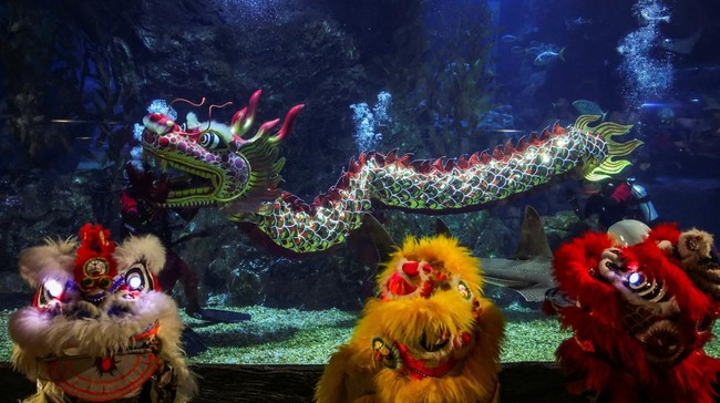 Bangkok - Tarian naga bawah laut memukau wisatawan saat Thailand bersiap menyambut Tahun Baru Imlek. Begini potretnya.
