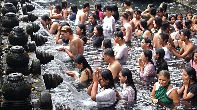 Bule-bule Ikut Ritual Melukat Banyu Pinaruh di Bali