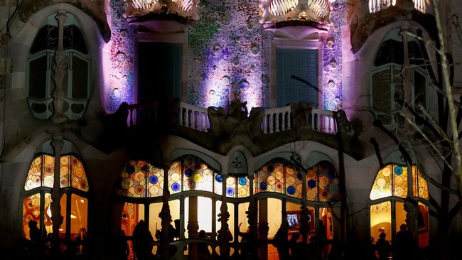 Barcelona - Karya seni pemetaan video mengubah bangunan Gaudi di Barcelona menjadi hutan digital. Yuk lihat.