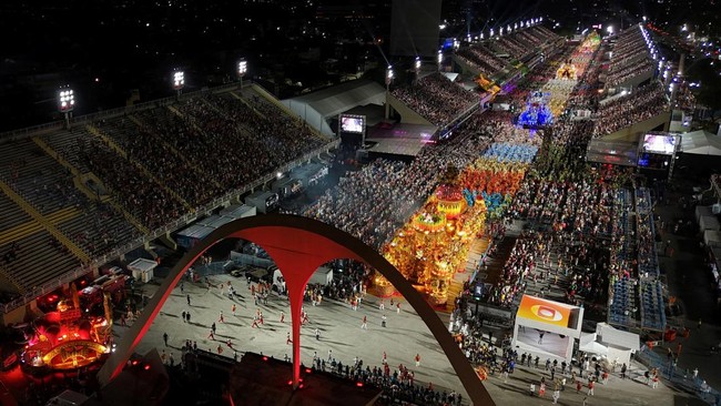 Brasil - Pemandangan drone memperlihatkan lokasi karnaval Sambadrome di Rio pada malam pembukaan. Karnaval berlangsung semarak.