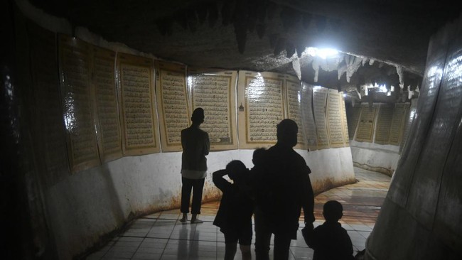 Bogor - Goa Al-Qur'an menjadi tempat favorit bagi pengunjung untuk wisata religi saat Ramadan. Goa buatan ini dihiasi 30 juz ayat Al-Qur'an.