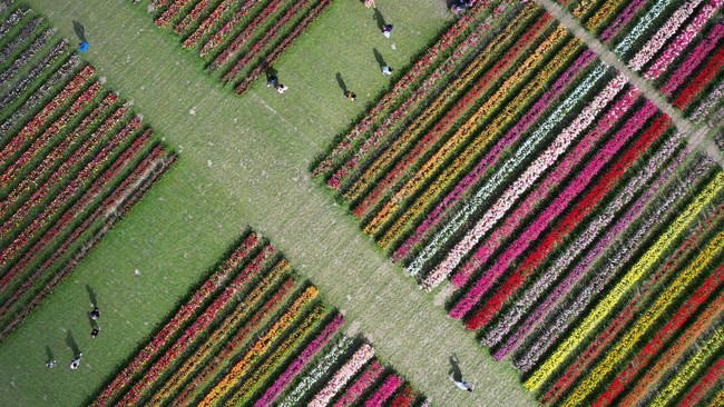 Inggris - Festival tulip tengah digelar di Tulleys Farm, Turners Hill, Inggris. Satu juta tulip yang tengah mekar bisa dinikmati keindahannya.