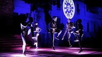 Pertunjukan pada hari Jumat (18/4), dimulai pada tengah malam. Peserta melukis wajah mereka, menyesuaikan kostum yang menyerupai tulang, dan mendandani anak-anak dengan pakaian yang menyeramkan seperti kerangka.