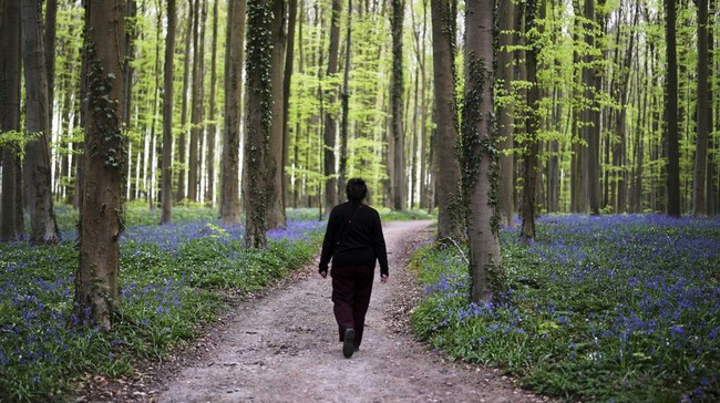 Belgia - Hamparan bunga bluebells mewarnai jalur setapak di Hallerbos, Belgia. Warga dan wisatawan menikmati keajaiban tahunan musim semi ini.