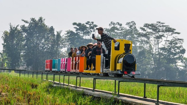 Bandung - Desa Kiangroke hadirkan wisata kereta sawah. Tarif Rp15.000 per putaran, jadi solusi lapangan kerja dan daya tarik baru di Bandung Selatan.