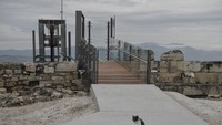 Sebagai perbandingan, Acropolis di Athena, Yunani, yang juga merupakan situs warisan dunia UNESCO, telah memasang lift aksesibilitas sejak 2004 dan menggantinya dengan sistem yang lebih modern pada 2020. (REUTERS/Louiza Vradi)