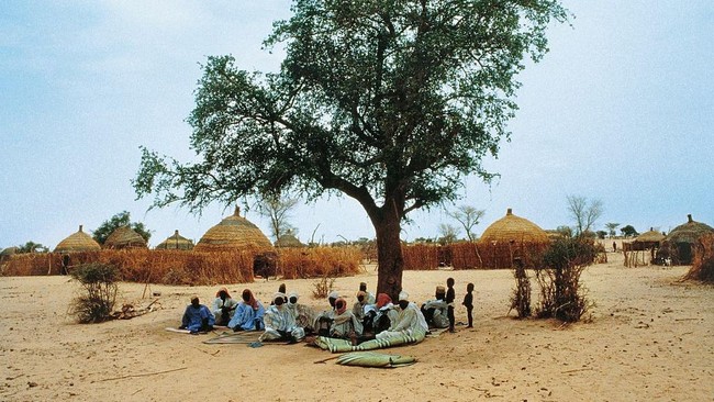 Burkina Faso mencatat suhu daratan tertinggi global pada 2023 (29,96 °C). Minim pohon dan curah hujan, negara ini alami krisis air dan pangan. Warga bermigrasi ke kota, tapi adaptasi muncul lewat energi surya dan arsitektur tradisional yang menahan panas. Getty Images/DE AGOSTINI
