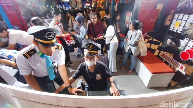 Jakarta - Pengunjung Jakarta Fair bisa merasakan sensasi menjadi masinis LRT Jakarta. Wahana simulator ini hadir untuk mengenalkan transportasi publik modern.