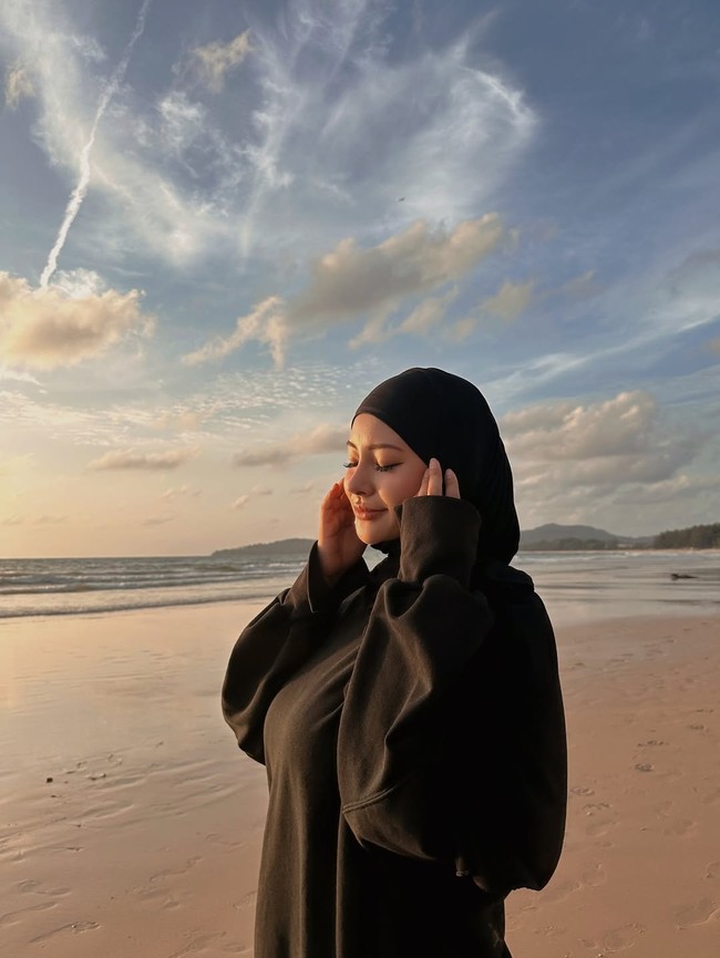 Mantan bintang dewasa Jepang yang telah mualaf, Rae Lil Black membagikan momennya menikmati keindahan sunset di Phuket, Thailand.