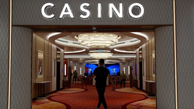 Seorang pria memasuki kasino di City of Dreams, sebuah resor terpadu yang mencakup kasino kelas atas pertama di Sri Lanka, di Kolombo, Sri Lanka, Senin (25/8/2025). REUTERS/Thilina Kaluthotage