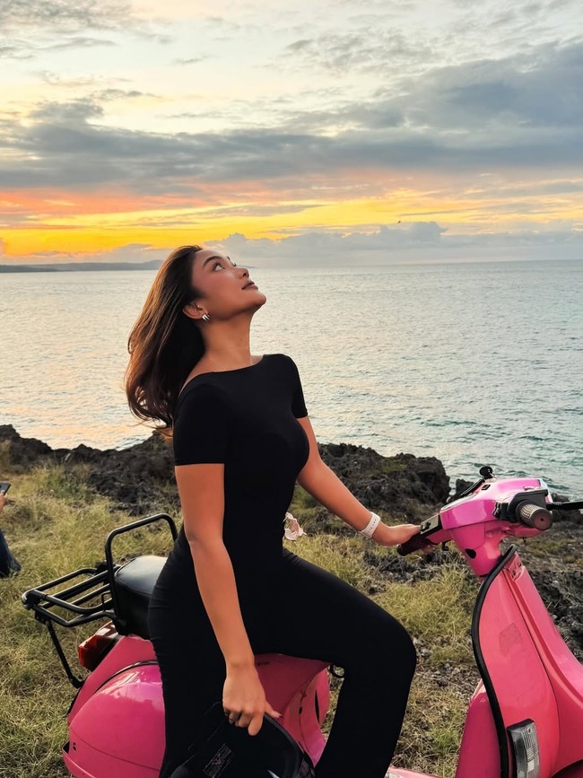 Dalam akun Instagramnya penyanyi cantik Marion Jola beberapa kali membagikan momen liburannya. Salah satunya adalah menikmati sore di pantai.