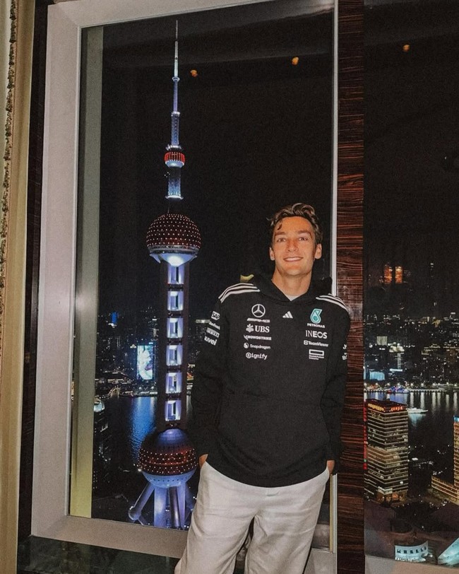 Selain sibuk dengan balapan dan latihan, George juga sering membagikan kegiatan liburannya di instagram. Ini fotonya saat berada di Shanghai.