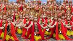 Banyuwangi - Seribuan penari Gandrung tampil di Pantai Boom Banyuwangi dalam Festival Gandrung Sewu. Festival menampilkan keindahan budaya dan semangat masyarakat Osing.