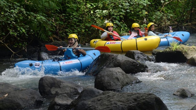 Jakarta - Susur Kali Pusur dengan kano karet di Polanharjo, Klaten, Jawa Tengah, menarik wisatawan sekaligus mendukung ekonomi dan pelestarian alam warga.