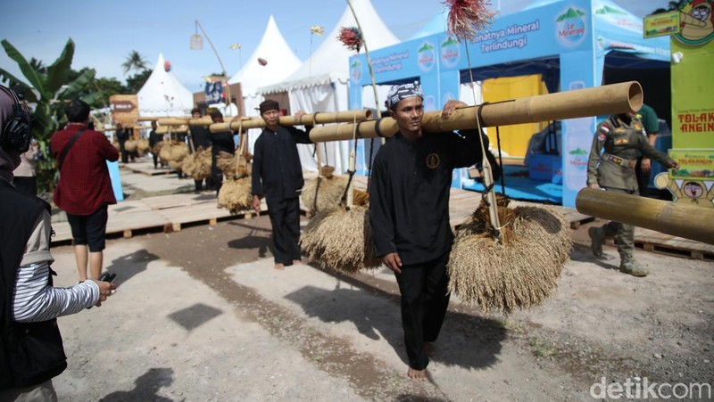 Sejak pintu masuk dari WJF, warga dari Kampung Adat Kasepuhan Sinar Resmi ini berjalan sembari memikul hasil panen. Tak hanya orang dewasa, dalam parade ini juga di isi oleh anak-anak yang berasal langsung dari Kampung Adat.