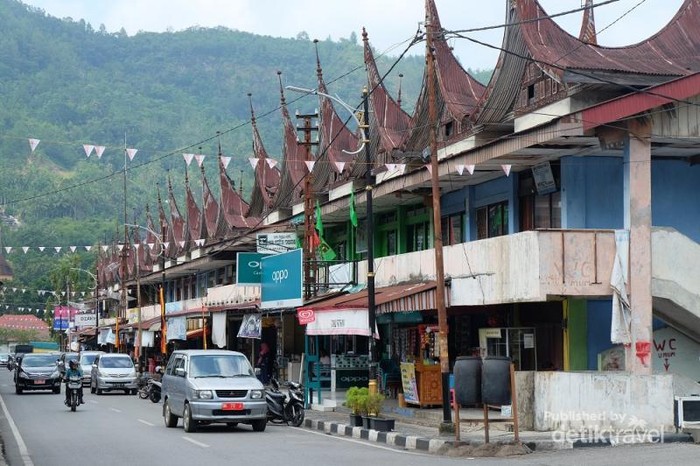 Nah, dari terminal angkutan umum, banyak berjejer kios-kios dengan bangunan khas Minang.