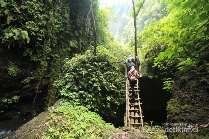 Dibutuhkan sekitar 30 menit berjalan kaki menuruni tebing untuk melihat keindahan Kabut Pelangi