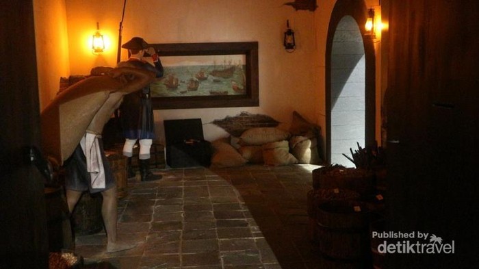 Replika gudang rempah lengkap dengan berbagai jenis rempah-rempah asli yang tersimpan di dalamnya