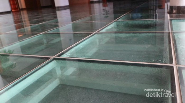 Lantai asli yang masih dipertahankan dan dilapisi kaca patri agar masih bisa terlihat