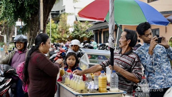 Kalau haus, ada penjaja Jamu. Beras Kencur, Sinom, tersedia. Menarik disajikan dengan Es Batu (Foto: Aryasuta)