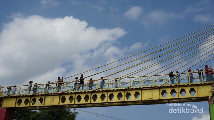 Jembatan Kaca yang menjadi ikon Kampung Warna Warni dan Kampung Tridi menjadi spot asyik buat selfie. (Foto: Aryasuta)