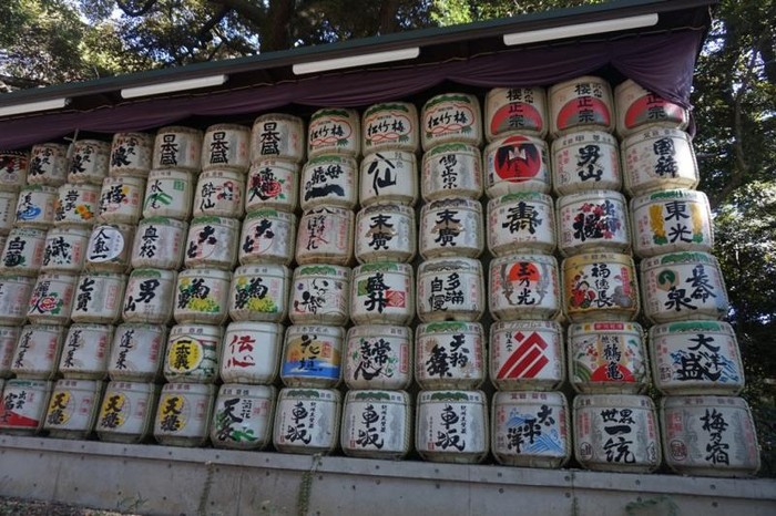 Tong berisi sake yang juga didonasikan untuk Meiji Jingu