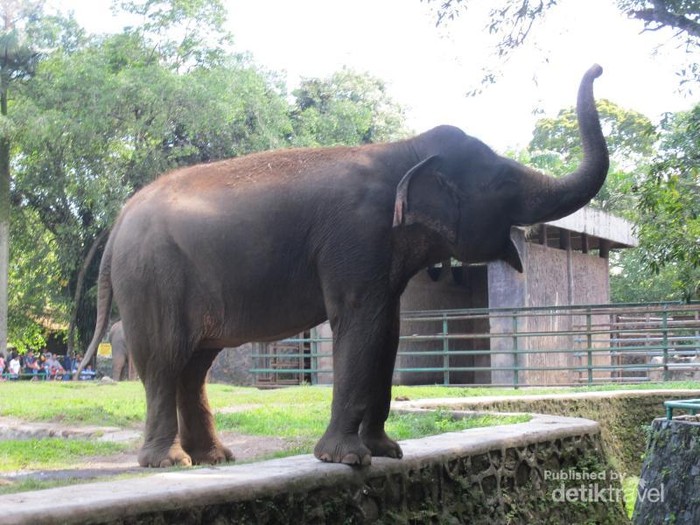 Gajah yang sedang menyapa pengunjung.