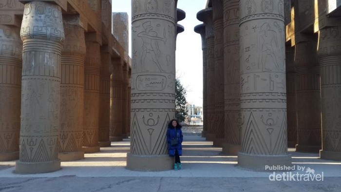 Great Hypostyle Hall di komplek Kuil Karnak, Mesir. Mirip dengan aslinya kan.