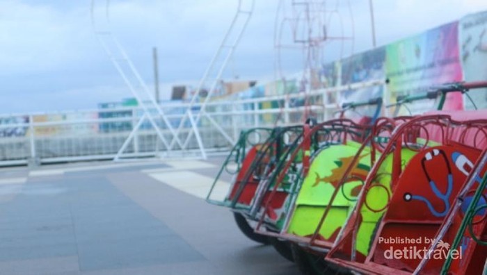 Sambil bersantai, pengunjung bisa menikmati kesibukan kapal penumpang yang keluar masuk pelabuhan