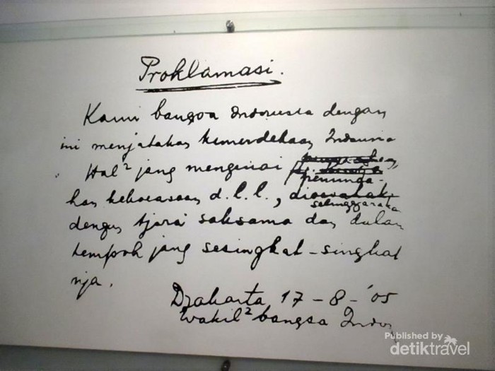 Sekarang di ruangan tersebut terdapat salinan naskah proklamasi tersebut.