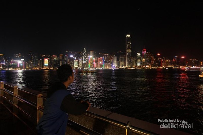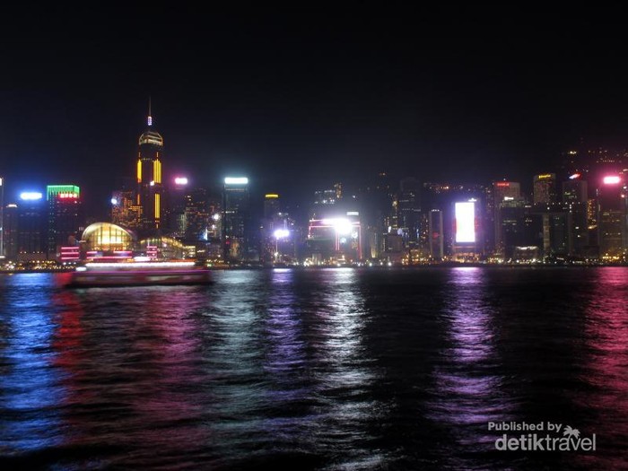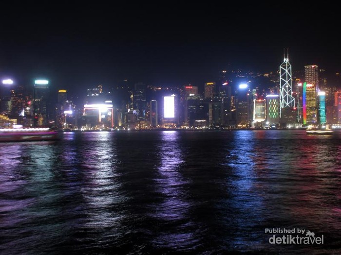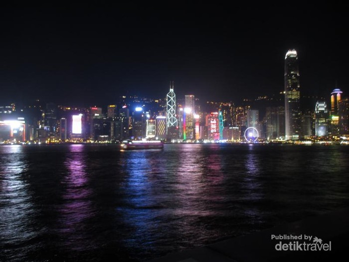 Hong Kong tidak hanya terlihat indah di saat siang hari. Saat malam hari, kota ini terlihat semakin menawan bermandikan cahaya lampu.