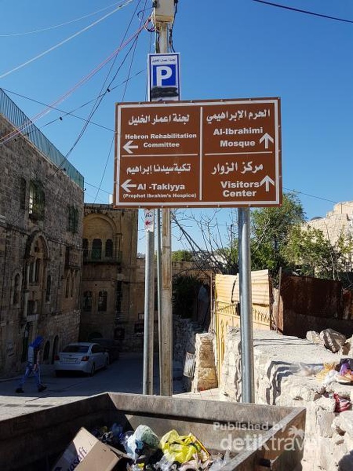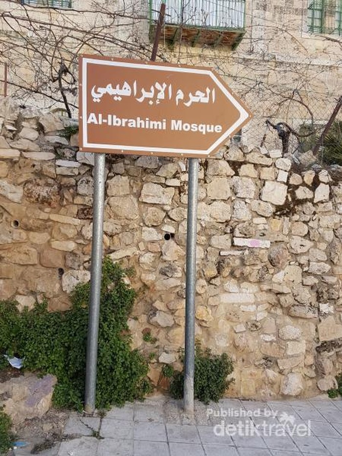 Memasuki kawasan Masjid Ibrahim kita akan menemukan papan nama petunjuk bertuliskan Al Ibrahimi Mosque