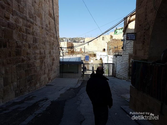 Pintu masuk ke dalam Masjid Ibrahimi yang dijaga ketat oleh tentara Isarel