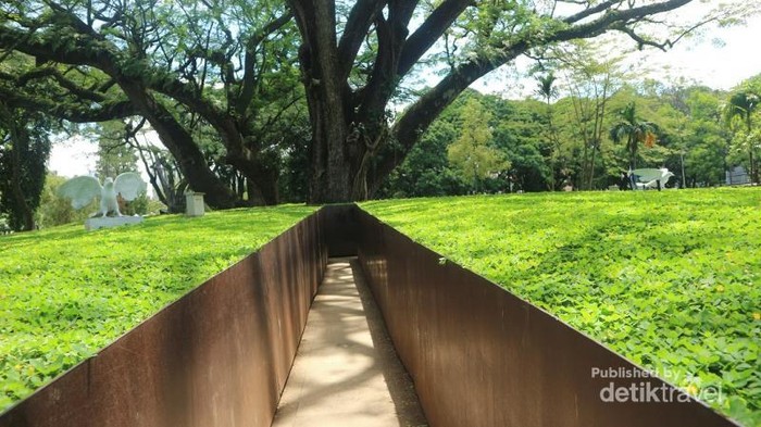 Taman Labirin terletak di bawah pohon trembesi berusia ratusan tahun
