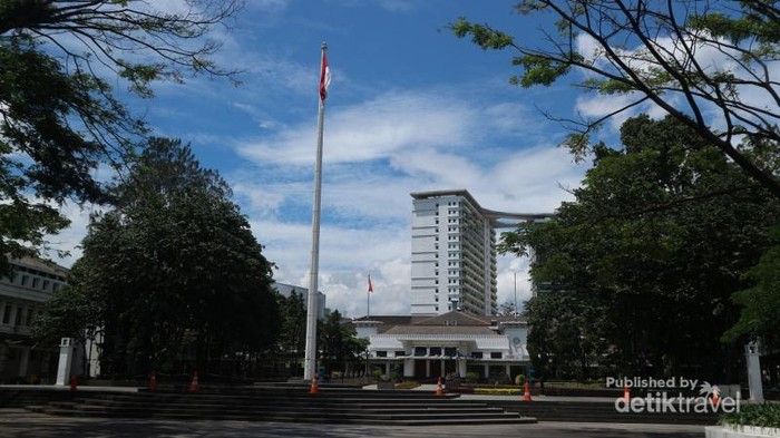 Selain di taman, pengunjung pun juga bisa berfoto dengan latar belakang Balai Kota Bandung