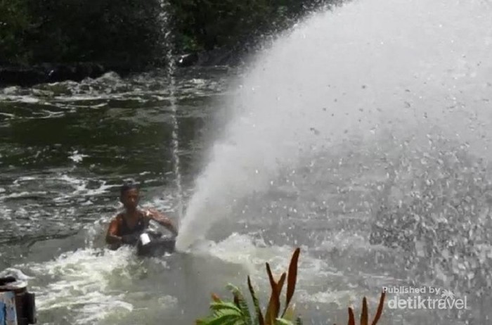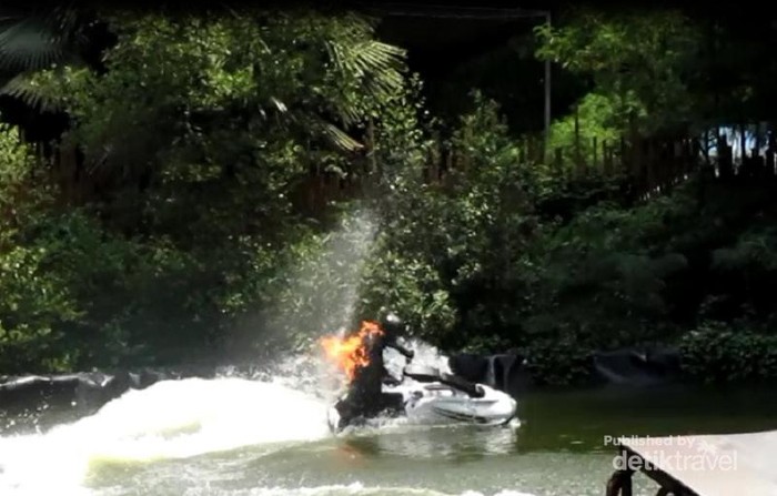 Tetap melaju dengan jet ski walau baju terbakar