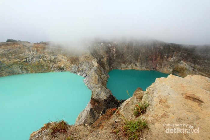 Danau kawah Kelimutu yang dapat berubah-ubah warnanya
