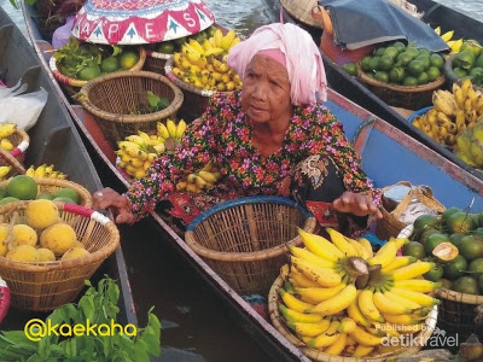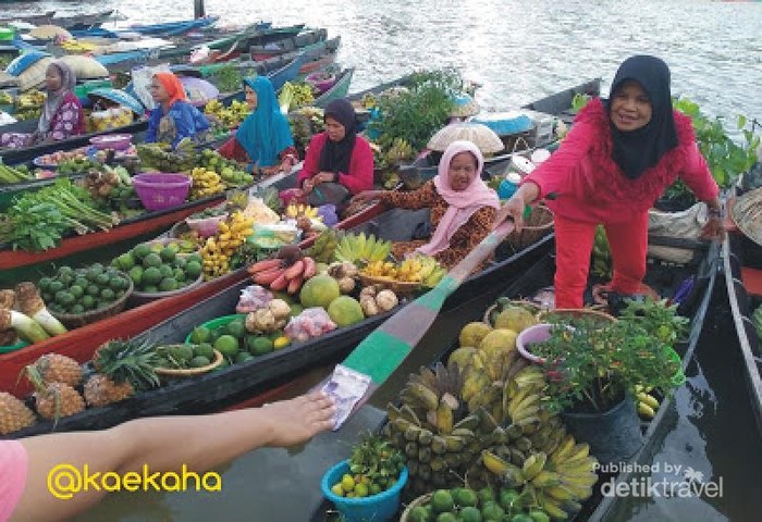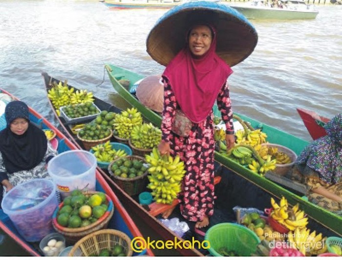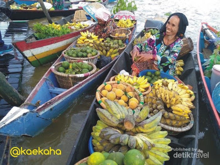Pasar terapung merupakan salah satu produk budaya khas Banjarmasin. Selain bisa belanja, traveler juga akan disambut senyum hangat para penjual.